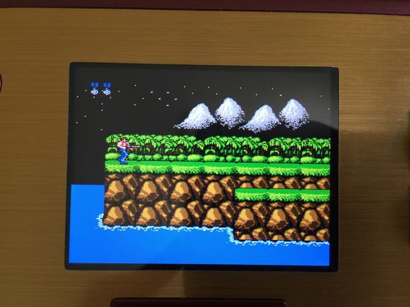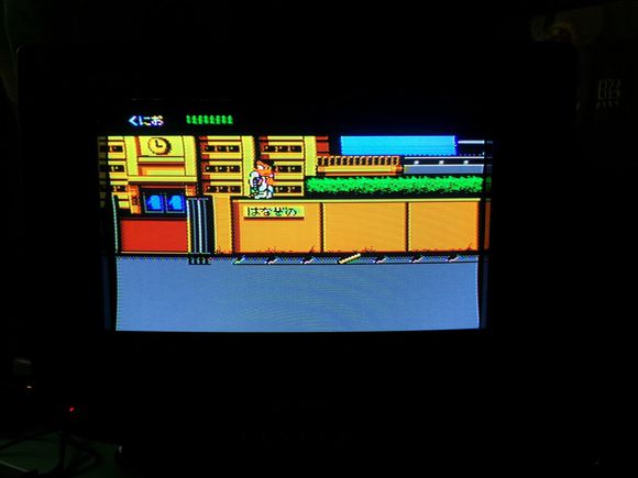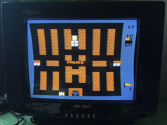 家里有个14寸还是15寸的小彩电,RF接口老化还怎么的惨不忍睹,这个画面是国产全集成机的AV输出画面,组装机对比现在牛屎软解机优势比较明显的就是颜色比较艳丽,可惜这个显示器是山寨的。。。。。用电脑显示器改的。。。。画面扭曲。。。。为了更好的怀旧体验FC那个时代的机型,还是需要重新买一台纯索尼等日产原厂的彩色电视,N制全屏无死角,,满世界收不到15寸 17寸以内的原产索尼松下纯平彩电,,,一般都是超平的比较多,,,而且想收短显像管的也几乎灭绝。。。