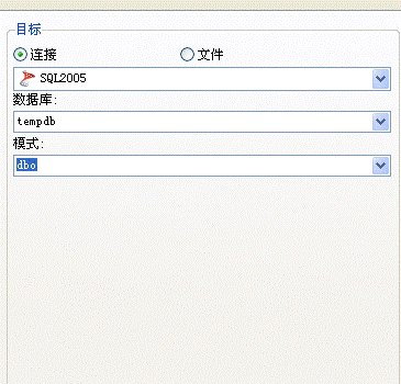 11、目标连接选择SQL2005,数据库最好事前准备一个空的数据库,模式也选择dbo